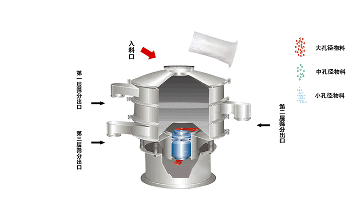 3. 筛分过程:在振动的作用下,物料会不断跳跃、滚动和移动,同时通过筛网的筛孔,较大颗粒的物料会被挡在筛网上方,而较小颗粒的物料则通过筛孔落入下方的出料口。