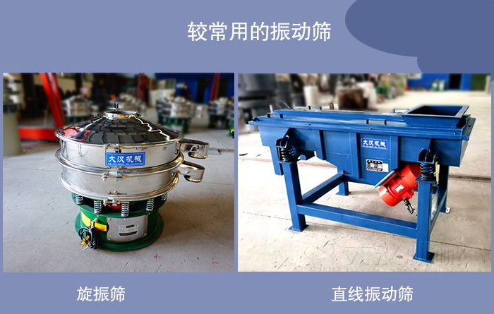 较常用的振动筛包括旋振筛和直线振动筛,我厂的振动筛产品也以这两种为主。旋振筛也叫三次元振动筛分过滤机,通过振动电机的带动设备在运作让物料在筛面形成一个三次元的运动,以达到筛分的目的。一般地,旋振筛的型号是根据其直径命名,如600mm直径就叫600旋振筛筛,800mm直径就叫800型号旋振筛,正常的旋振筛的层数分为一层两层三层,旋振筛筛主要用于各粒度物料的分级,。它工作可靠,筛分效率较高,筛分精度较细。我厂生产的DH型,属于这种振动筛。