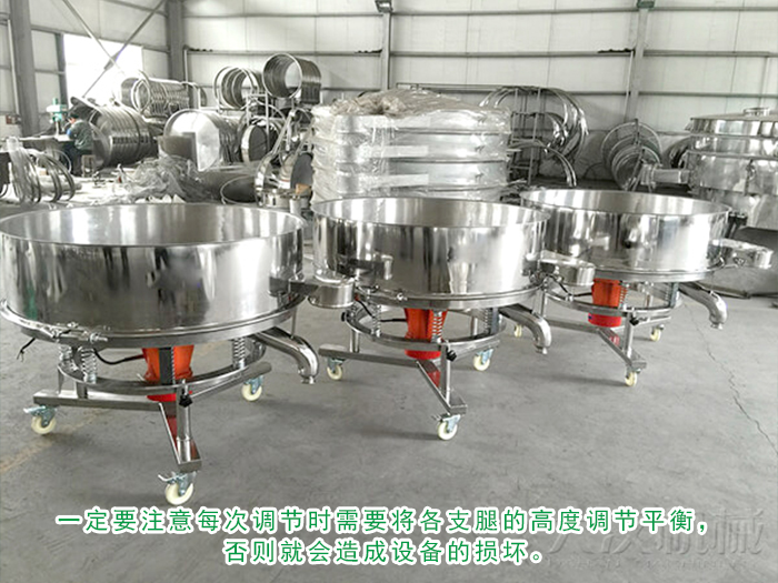 由于大多数客户在购买高频振动筛时,都要求将支架设计成可调节高度,因此客户在使用现场调节支架高度时一定要注意每次调节时需要将各支腿的高度调节平衡,否则就会造成设备的损坏。