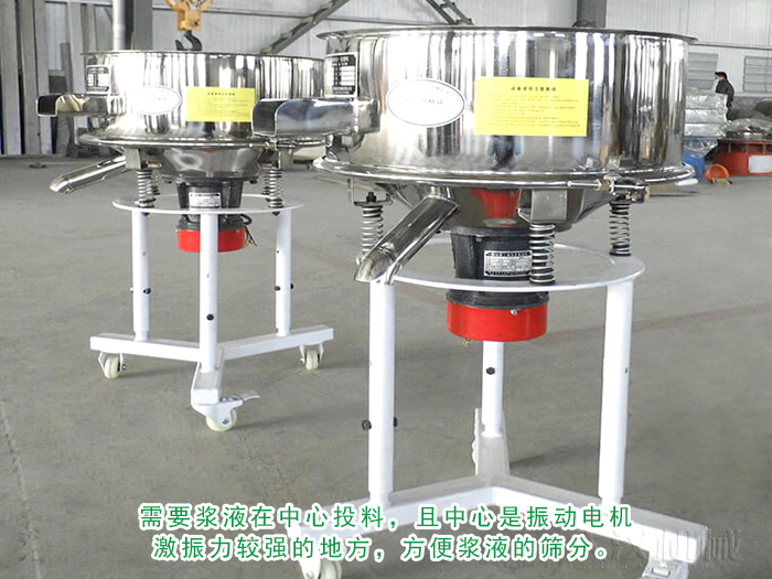 由于浆液具有一定的粘性,流动性非常不好,因此需要浆液在中心投料,且中心是振动电机激振力较强的地方,方便浆液的筛分。