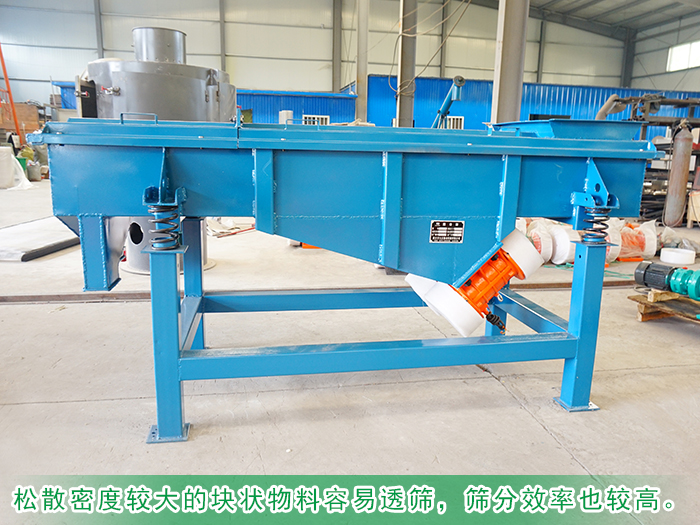 相同物料的情况下其松散密度较大的块状物料容易透筛,筛分效率也较高。所以一定要保证物料的松散密度的大小,才能够在一定程度下保证直线筛的筛分效率。