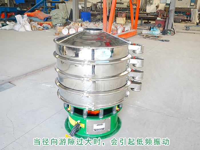如是激振器的原因,那就把偏心块的重量增加,调节振幅;如是振动电机,振幅调节靠轴两端的偏心块夹角来改变激振力的大小,夹角小,激振力变大,振幅变大;反之,夹角变大,激振力变小,振幅变小;对轴偏心式振动器,可以增减配重飞轮和带轮上的配重块,以增减振动筛分机的振幅。激振器工作时偏心重量产生的离心力使偏心轴弯曲,导致轴承的内套圈与外套圈的相对偏转,偏心会产生以转频及其各阶谐频而导致的振动,故运转中产生的惯性力和惯性力偶将引起轴承的动反力和振动,破坏轴承等零部件的平稳工作状态,产生高频震动。