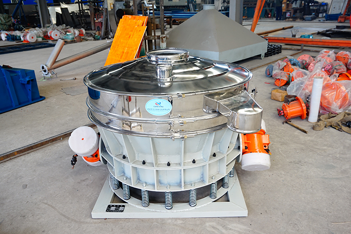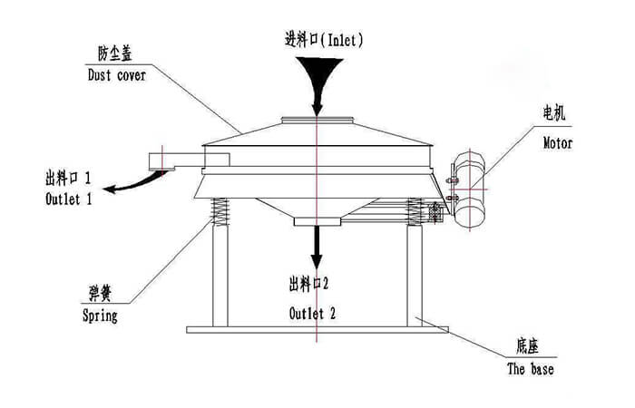 普通旋振筛:装配一台立式振动电机,利用立式振动电机作为激振源,在电机的带动下物料在筛框做水平、垂直、倾斜的三维运动。通过不同目数的筛网过网完成筛分目的,具有自动筛分排料的功能。