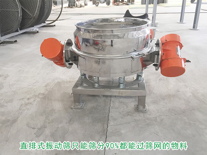 直排式振动筛:一般装配有一台到两台卧式振动电机,分单振源和双振源两种,单振源作用到物料上主要产生上下振动,不具备自动排料功能,双振源能在筛面上产生涡旋运动,具有自动排料功能,是以振动电机为激振源,在电机的带动下物料在筛框上做椭圆运动,快速并往复的实现物料过网动作。