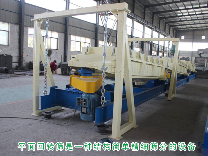 平面回转筛是一种精细筛,该设备结构简单,主要有以下部分组成,即筛架、筛箱、减震装置、驱动装置的部件组成,运作时性能稳定,