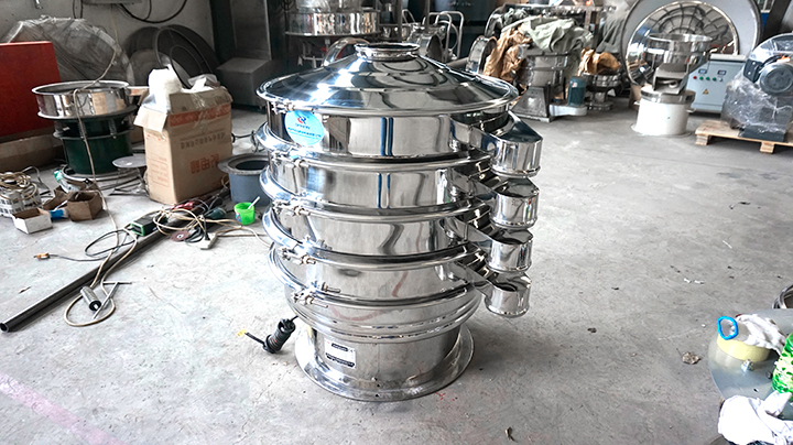 佰利乐 首先打开圆形振动筛振动电机底桶调整孔松开偏心块固定螺栓,根据所筛分物料轨迹向出料口反方向调整上下偏心块的上下角度,然后将少量物料放在筛面上,使筛机运行并查看筛面物料的运行轨迹,如果所调整角度达到所需要的程度就可以停机上紧偏心块固定螺栓了。