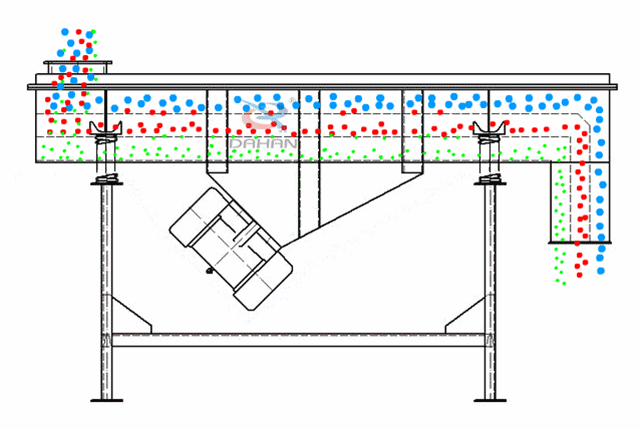原理是利用振动电机激振器作为振动源,使物料在筛网上被抛起,同时向前作直线运动,物料从给料机均匀地进入筛分机的进料口,通过多层佰利乐筛网产生数种规格的筛上物、筛下物、分别从各自的出口排出。