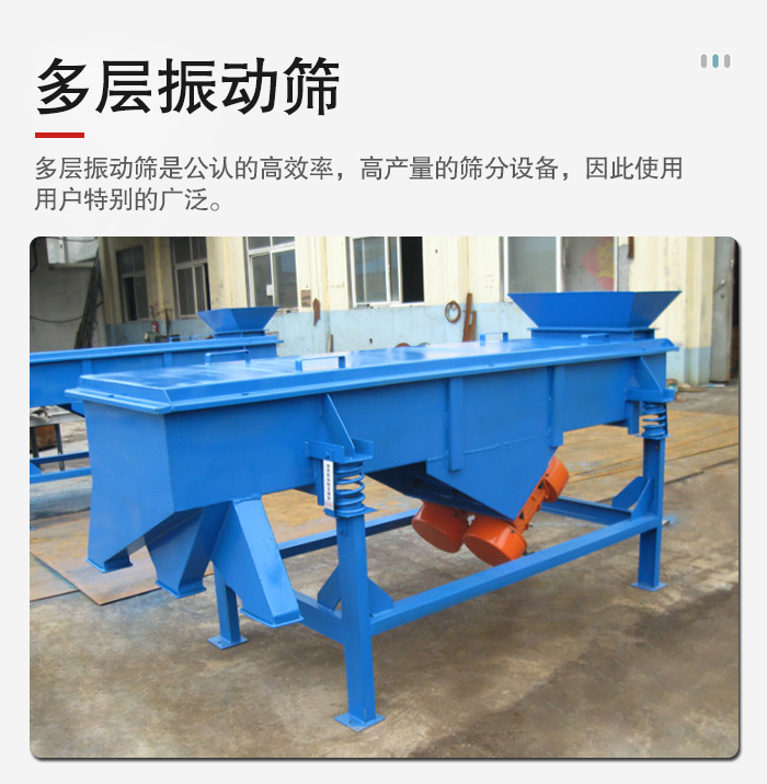 (2)产量低的话就可以考虑选择小型号的多层振动筛,产量高就需要选择大型号的多层振动筛。