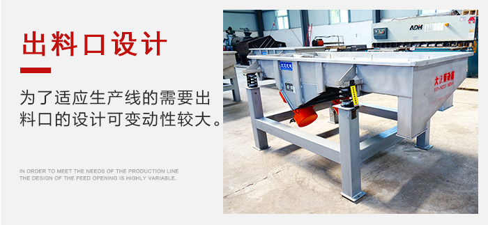 (2)多层直线振动筛出料口的设计可变动性较大,一切为了适应生产线的需要。例如多层直线振动筛的出料口的形状有圆形的、方形的;出料口的伸缩方向可以设计成向前伸、向下伸、倾斜向下伸等。