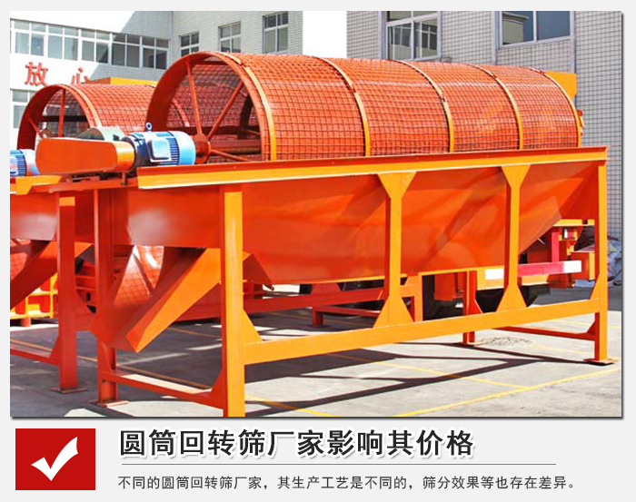 圆筒回转筛质量的好坏直接影响筛机的使用寿命,由于圆筒回转筛一般是用于建材、冶金、化工及矿山等一系列处理量大的行业,所以优质的圆筒回转筛直接可以减少设备的维修量,进而节约维修成本。优质的圆筒回转筛,生产成本会比较高,用户后期的维修成本低,所以质量好的圆筒回转筛价格会稍贵,但是市场上一些小型生产厂家为了谋取私利以次充好,压低价格,采用不正当的竞争手段,所以用户在选购时最好亲自考察生产厂家,对其进行大概的了解。
