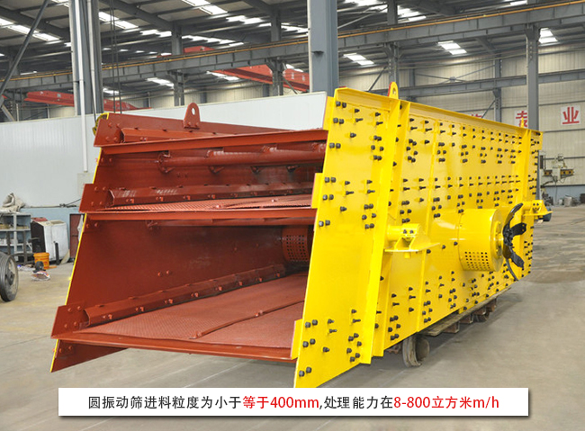 圆振动筛进料粒度为小于等于400mm,处理能力在8-800立方米m/h
