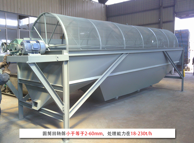 圆筒回转筛小于等于2-60mm,处理能力在18-230t/h