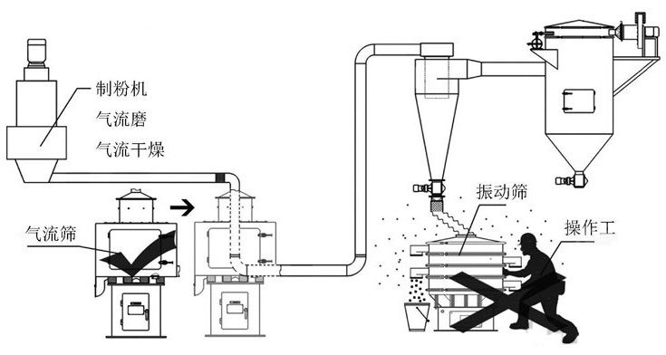 气流筛作用于离心力并且不产生任何振动,因此在入口和出口处可以进行刚性连接,而一般的振动上工作并且在入口和出口处只能进行柔性连接,灵活的连接增加了泄漏的机会,空气含尘量低于10mg/m3。