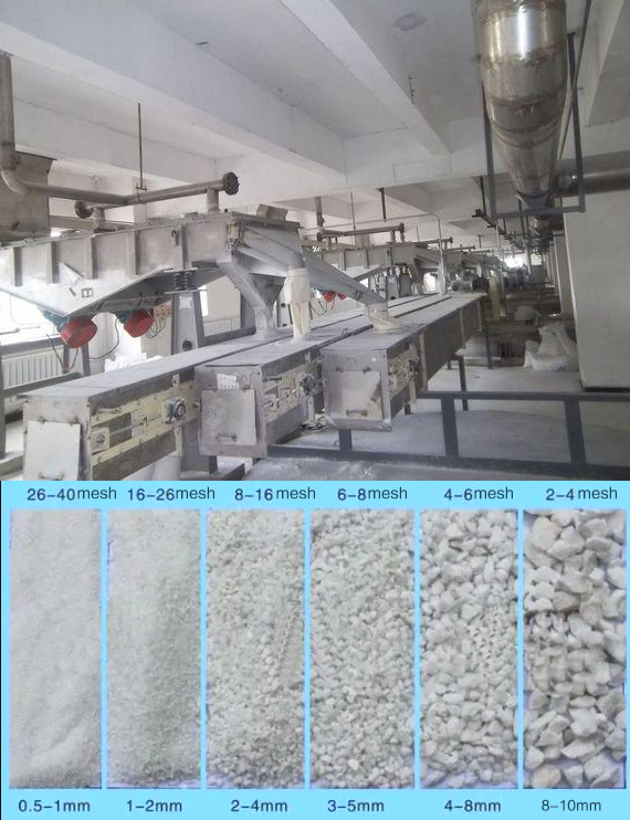 是专门用于硅砂的筛分和分级。可处理0.5mm-32mm范围内的石英砂颗粒或粉末,可以同时进行多层筛选。