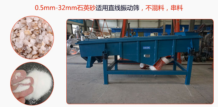 以上是石英砂在直线筛中的应用,石英砂直线筛筛分效率高,不会有混料和串料,是石英砂或石英粉的常用的筛分设备。