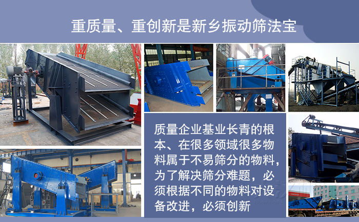 由于振动筛的客户与振动筛厂家是长期的合作关系,如果质量达不到客户要求,解决不了客户的实际筛分难题,客户就很难再次选购你的产品,所以讲质量企业基业长青的根本、在很多领域很多物料属于不易筛分的物料,为了解决筛分难题,必须根据不同的物料对设备改进,必须。