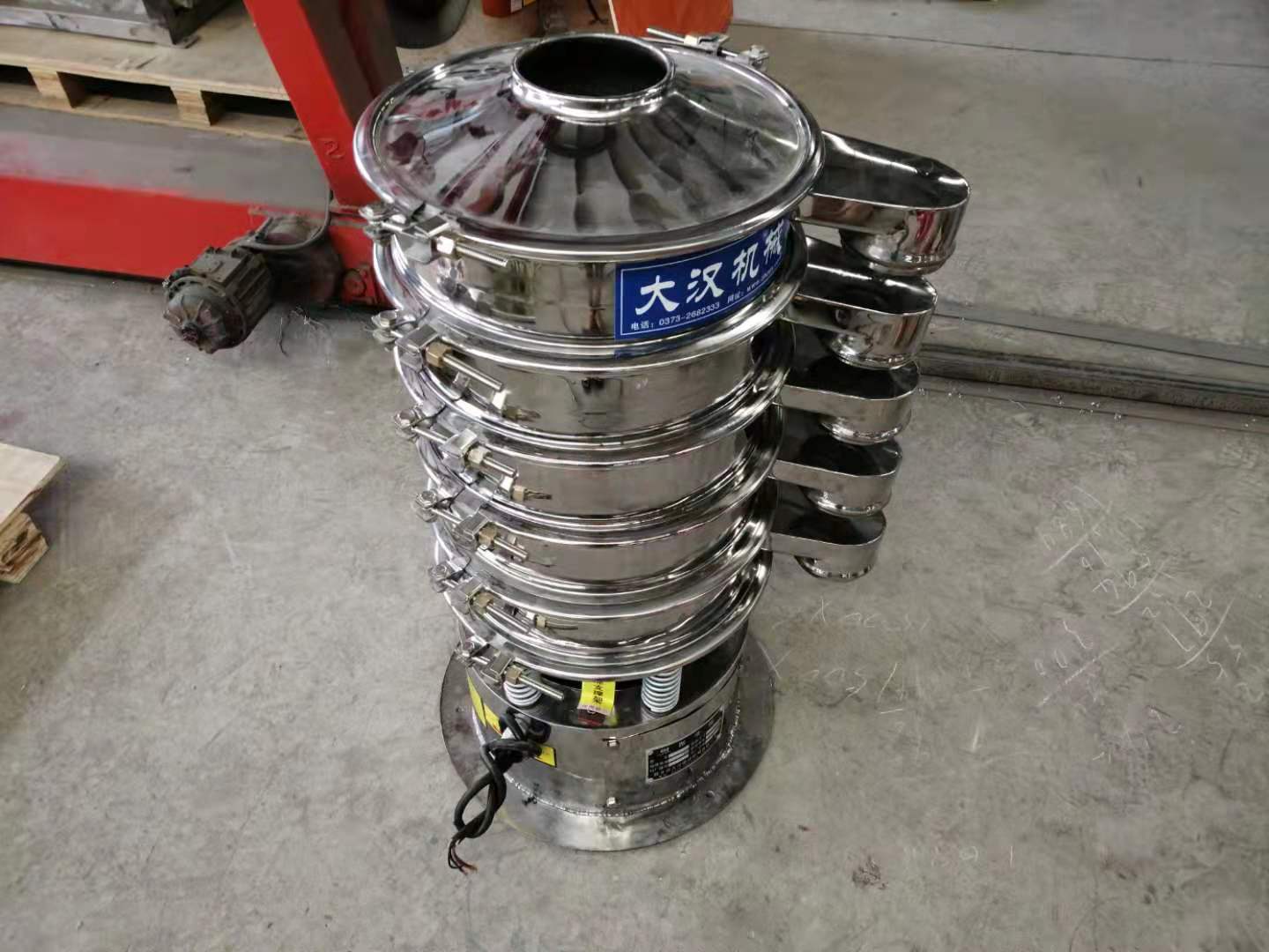 电源是垂直振动电机。 振动电机轴的上下端配有重锤。 水平,垂直和倾斜三维运动的三维运动,即三维运动,在不平衡重量的作用下通过振动电机的旋转运动而旋转。 振动电机的三维运动用于通过弹簧和振动筛的振动体将三维运动传递到振动网面。 通过改变振动电机上下重量的相位角,实现了屏幕表面材料的轨迹,从而达到了筛分,杂质去除和过滤的目的。 该系列振动筛主要用于食品,化工,制药,磨料,冶金,建材,等需要筛分,分级,固液分离的行业。