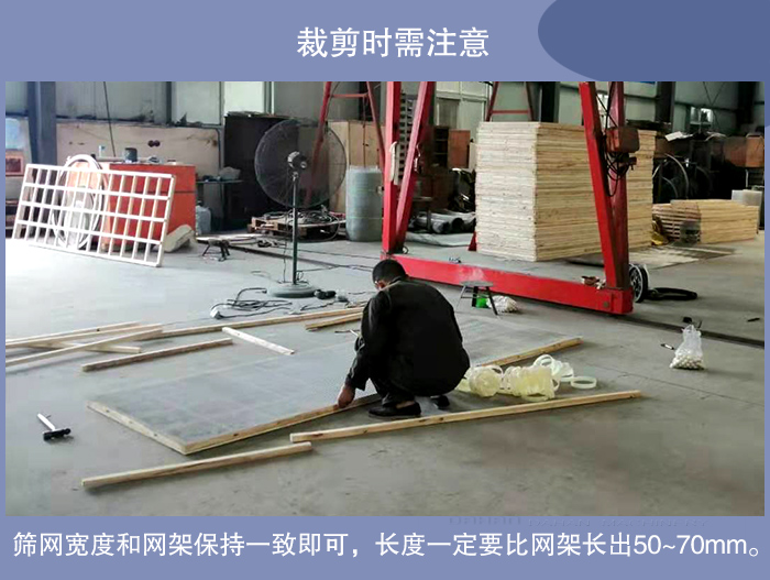 2. 裁剪时,筛网宽度和网架保持一致即可,长度一定要比网架长出50~70mm。
