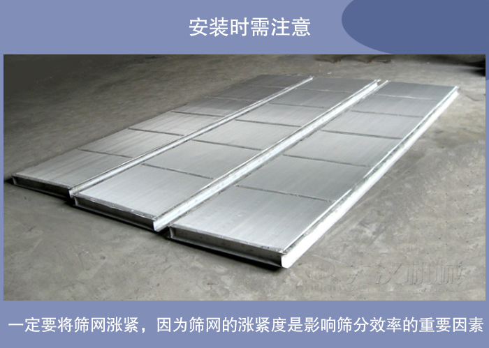 3. 安装时,一定要将筛网涨紧,因为筛网的涨紧度是影响筛分效率的重要因素。