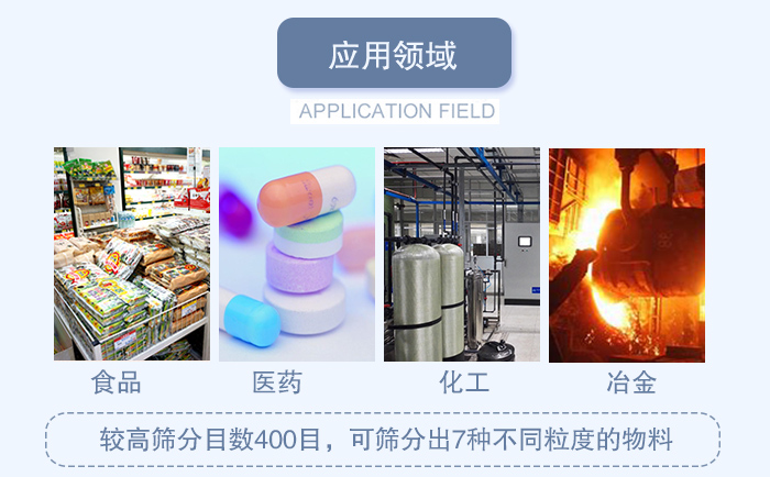 产品主要应用到:食品,医药,化工,冶金,液体,陶瓷,塑料,磁性材料等。