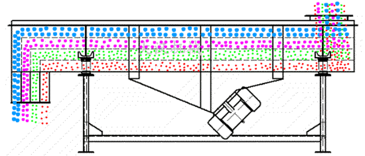 粉煤灰振动利用振动电机激振作为振动的振动来源,使物料在筛网抛起,同时向前作直线运动,物料从给料均匀地进入振动筛机的进料口,通过多层筛网网孔大小的不同控制物料颗粒的大小,从而保证不同的物料在不同层级中被排出筛箱外。