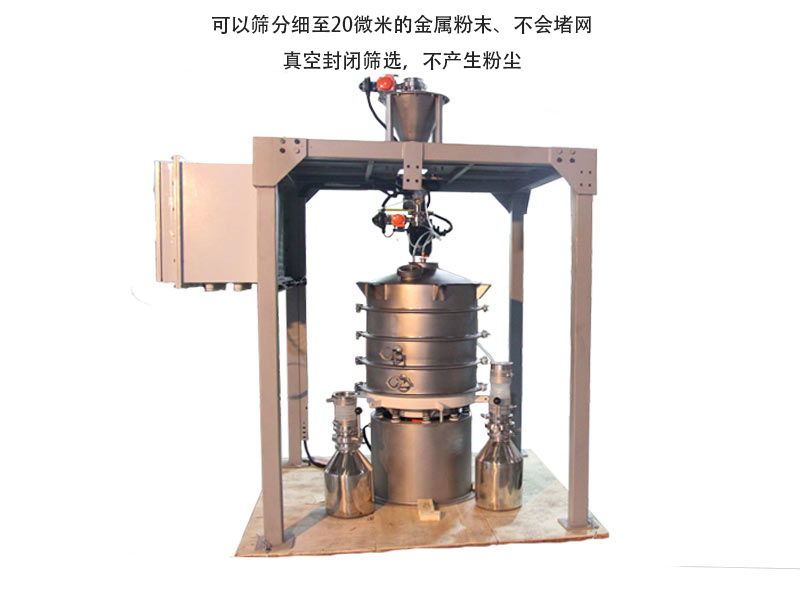 特点:与超声波系统相结合,可以筛分20微米的金属粉末,不堵网,真空封闭筛选,不产生粉尘