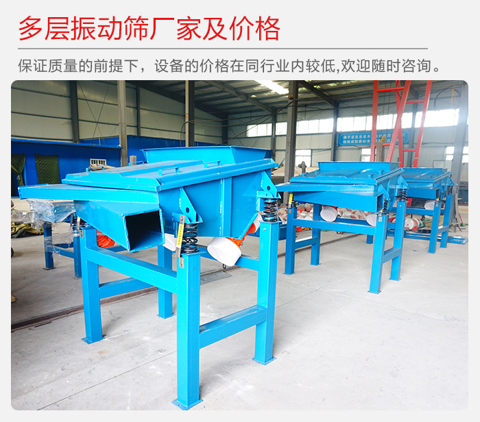 大汉建立以来,有自己大型的矿山设备生产厂房,完全可以自己生产自己销售设备,多层振动筛在保证质量的前提下,设备的价格在同行业内较低,因为我们属于厂家直销型的企业,没有中间商,多层振动筛价格便宜,欢迎用户随时来咨询。