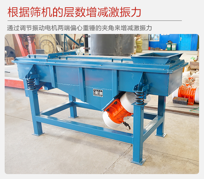 5、用户可根据筛机的层数,物料比重不同来增减筛机的激振力(通过调节振动电机两端偏心重锤的夹角来增减激振力),使筛机达到最佳的筛分效果。