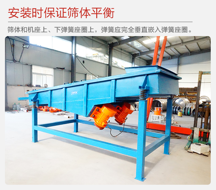 2、筛体和机座上、下弹簧座圈上,弹簧应完全垂直嵌入弹簧座圈,以保证筛体平衡,筛机的振动部分切勿与机外其它物体有任何硬性连接或接触。