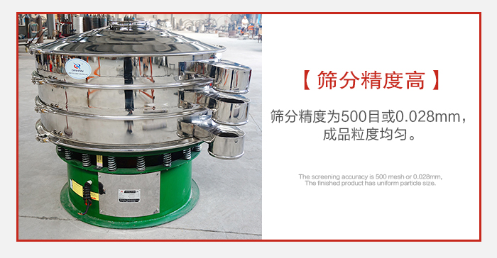 1、筛分精度为500目或0.028mm,成品粒度均匀;