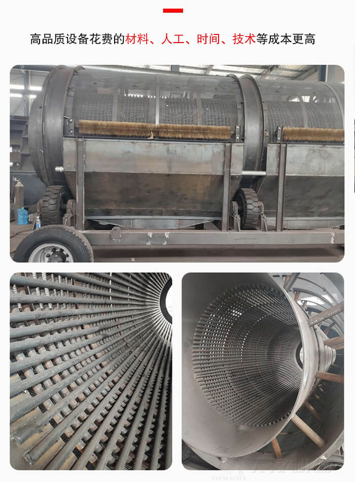 设备品质是决定移动滚筒筛价格的主要因素之一,质量越好的设备做工更精细,选材更用心,所以花费的材料、人工、时间、技术等成本更高,其市场价格则会更高,成本自然而然就更高,其价格也会更贵,但是后期使用中效果(包括、、产量等方面优势)也会更显著,带给用户的利润价值更高。