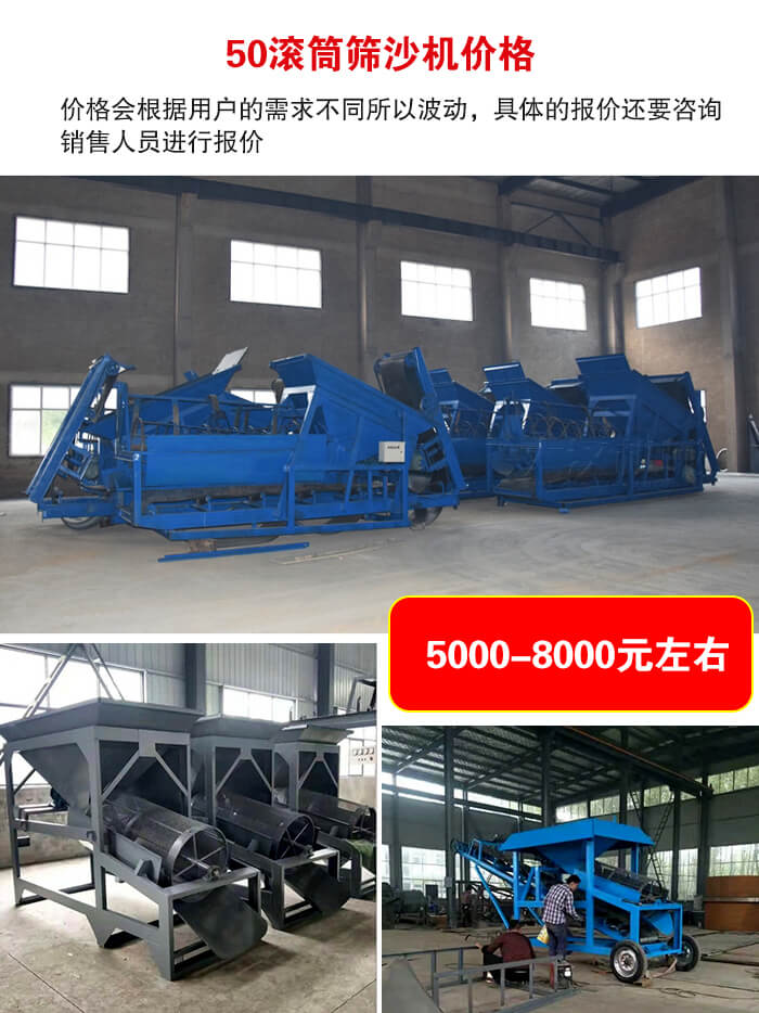 1,50滚筒筛沙机可进行定制改造服务例如:配有给料机,皮带输送机等设备,所以价格会根据用户的需求不同所以波动,具体的报价还要咨询销售人员进行报价。