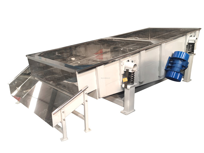 振动输送机用料槽的振动使料槽中的物料从入料口快速输送到出料口,可以用来输送块状、颗粒状或粉状、常温或高温的各种物料,将物料由一处搬运至另一处,除此之外,物料在输送过程中还可同时进行筛分、脱水、冷却或干燥等工艺作业。